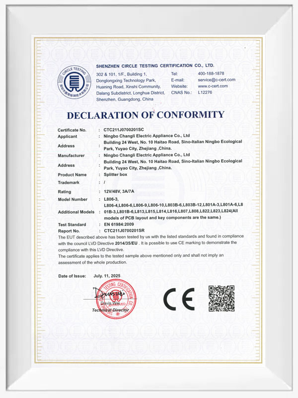 We possess state-of-the-art manufacturing and testing equipment, implement comprehensive quality management systems, and have built a professional service team to ensure high standards at every stage from production to after-sales service. The company has obtained multiple international certifications, including CCC, VDE, UL, PSE, ASTA, SAA, and KC, with products meeting various international safety standards and earning the trust of clients worldwide.