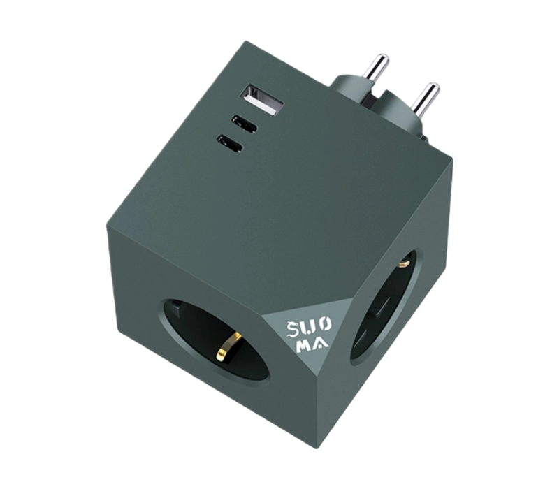 Plug-in cube power strip with three European outlets, one USB-A port, and two USB-C ports. This plug-in cube power strip is distinguished by its innovative interface combination. Featuring three European sockets, one USB-A port, and two USB-C ports, it caters to diverse charging needs. The flame-retardant PC material ensures safe operation. Compact in size for portability and easy storage. Rated at 230V voltage, 16A current, and capable of delivering up to 3680W, it provides stable and reliable power. The USB outputs support PD 20W fast charging, suitable for devices supporting quick charge. Whether for everyday household use or travel, this power strip delivers an excellent charging experience, quickly revitalizing your devices.