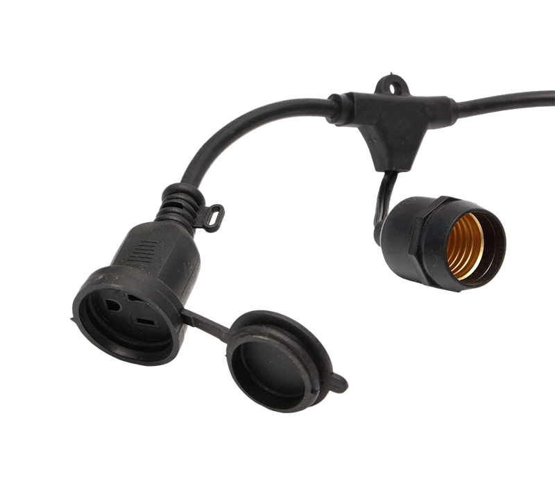 LED light string equipped with a US-standard three-pin waterproof plug and socket. This LED string demonstrates exceptional advantages—US-standard three-pin waterproof connectors ensure compliance with American electrical standards, and their waterproof design guarantees reliable outdoor performance without fear of water ingress or short circuits. The LEDs are energy-efficient with a long lifespan, perfect for decorating outdoor gardens and balconies in the US. When illuminated at night, they cast a gentle glow, promoting a romantic and cozy atmosphere, ideal for elevating outdoor space aesthetics.
